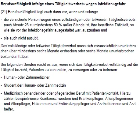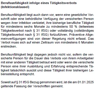 Diese Infektionsklausel setzt ein vollständiges Berufsverbot voraus.