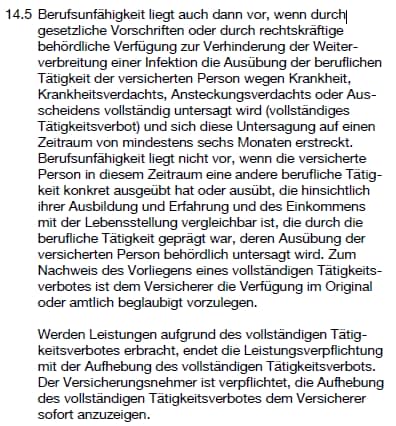 Diese Klausel bei Berufsverbot sieht auf den ersten Blick besser aus. Aber lassen Sie sich davon nicht täuschen!